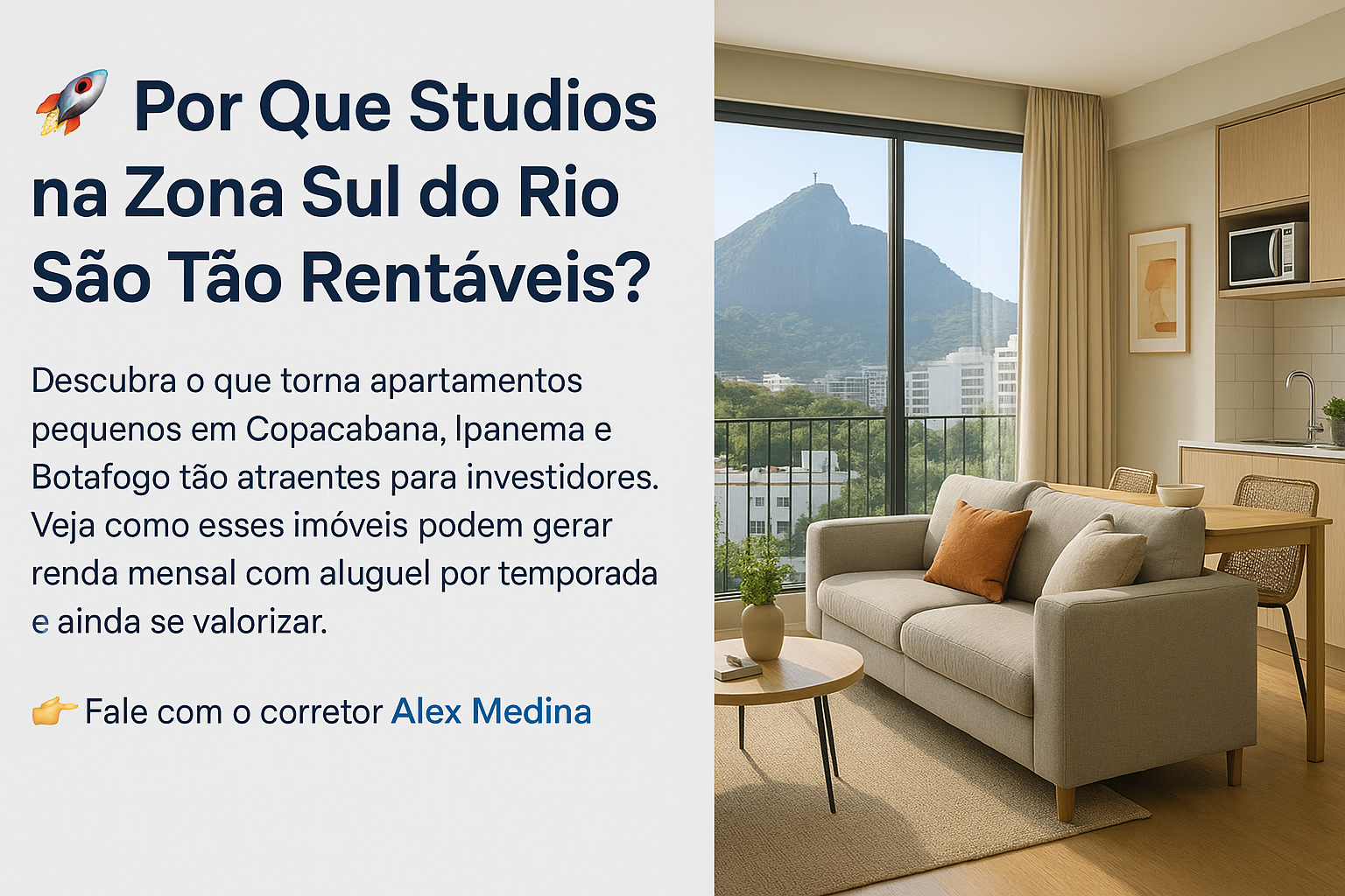 ? Fale agora com o corretor Alex Medina e descubra quais studios estão disponíveis com alto potencial de retorno.